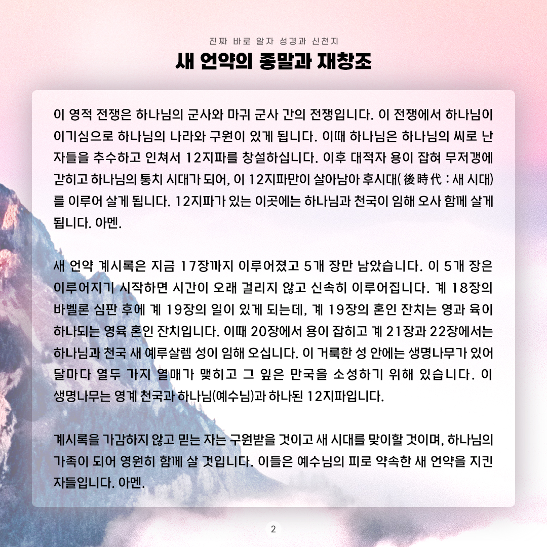 | 인류 최고의 진리가 나오는 10월 신천지 말씀 대성회 (1) | 2023.10.06 |