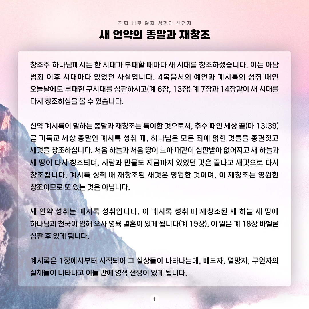 내일인 15일은 오후 4시 대구에서 예정되어 있어요. 주제는 배도자, 멸망자, 구원자예요. 그동안 봤던 성경은 아담으로 시작해서 계보 그리고 예수님의 행하심이었기 때문에 낯설게 다가온 단어였어요. 저도 이곳에서 배우면서 성경에 이런 관계가 얽혀있었나? 새롭게 알았어요. 나는 무관한 사람인데 알아야 하나? 네. 예수님이 희생하신 후로 태어나서 살고 있는 우리는 특히, 성경 마지막 시대에 있기 때문에, 살기 위해서 알아야 해요.